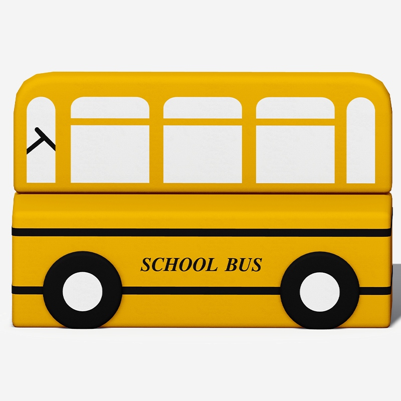 It features an all-padded integrated structure paired with themed decorative elements (e.g., school bus logos), blending immersive imaginative play for kids with safety via rounded edges. As customizable indoor soft play furniture, its size and theme styles can be adjusted to fit venue spaces and scene aesthetics, adapting to play areas in different-sized daycares or holiday parks.