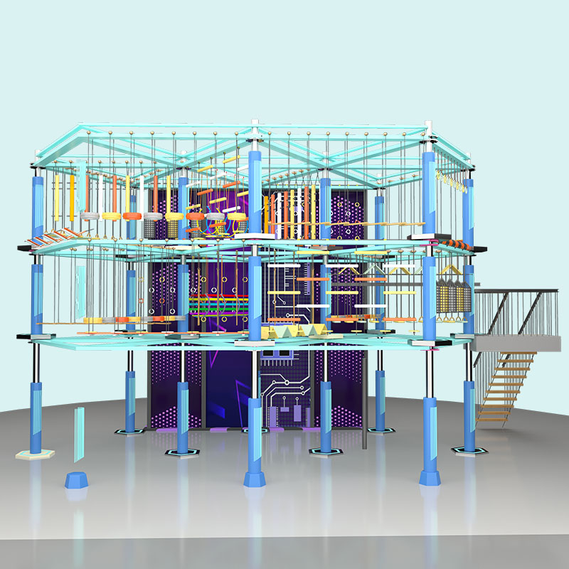 A:Absolutely. We specialize in customizing modular indoor high ropes courses based on your venue size (such as malls, schools, resorts), target users (kids, adults, corporate teams), and budget. Customizable elements include course layout, difficulty levels, themes (adventure, marine, jungle), color schemes, and additional functions (LED lights, interactive elements). We will provide a 3D design drawing for your confirmation before production.