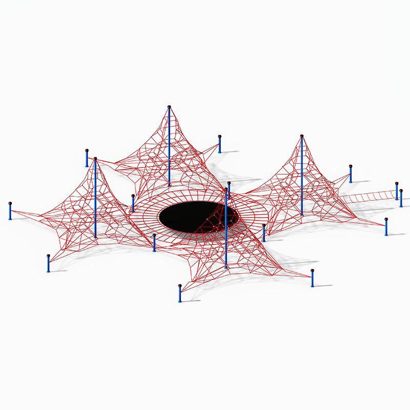 Multi-lobed 3D rope net areas maximize vertical/horizontal space utilization — addresses overcrowding in large venues, accommodating 30+ kids simultaneously (per unit) while offering diverse play experiences.